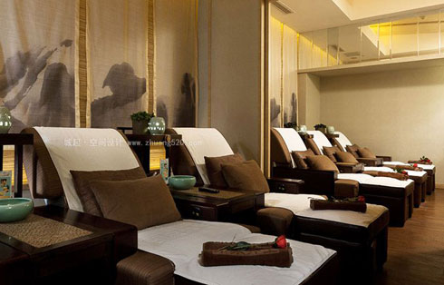 上海辦公室裝修公司案例:日式風(fēng)格的養(yǎng)生館,以舒適幽靜為原則,追求精致靜雅的格調(diào)和氣氛。