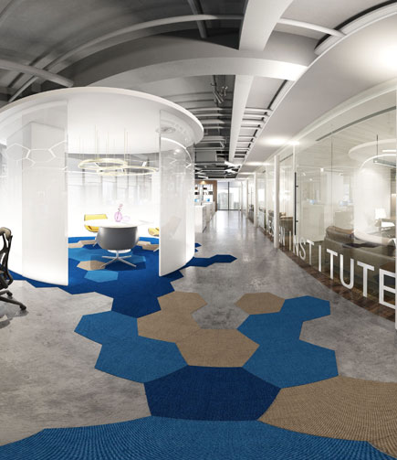 上海辦公室裝修公司案例:不同的材料和照明為每個層次和活動帶來溫暖和個性。循環(huán)模式提供了各種移動和居住空間的體驗。